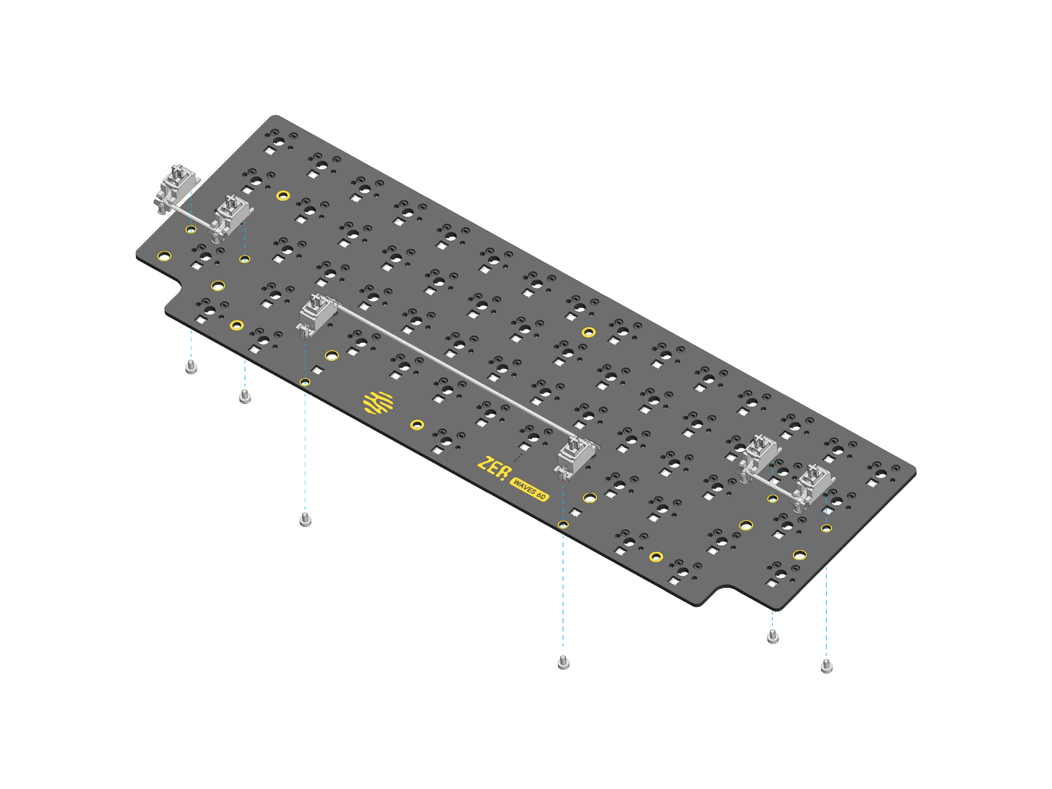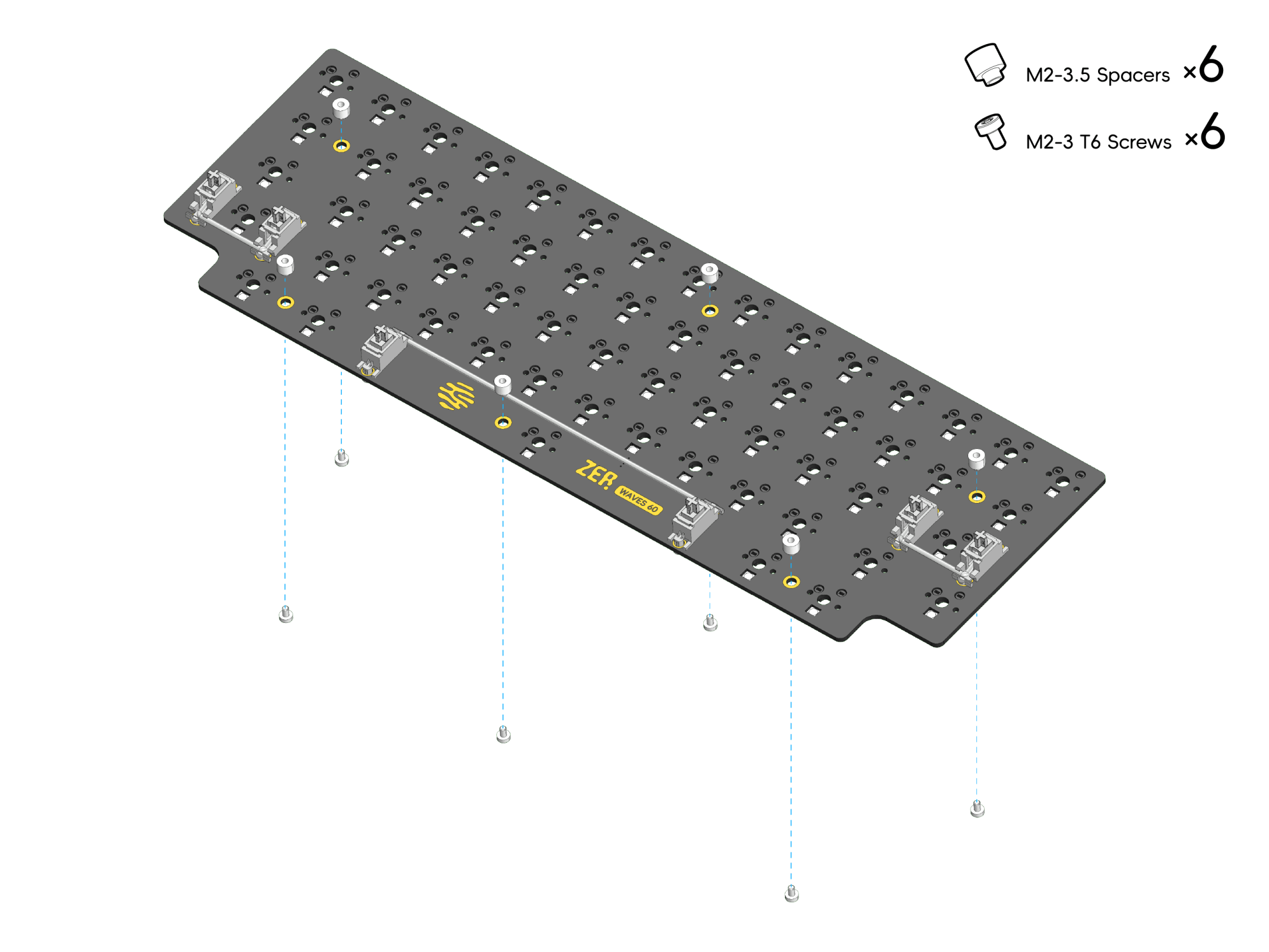 4. 使用 6 颗 M2x3mm 沉头螺钉将定位板固定到 PCB 上