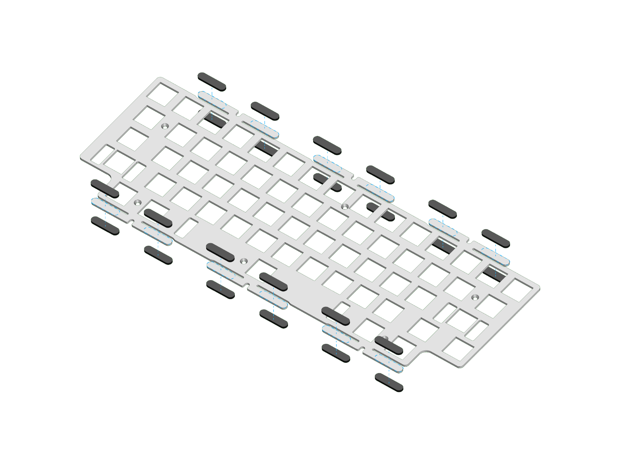 3. 这一步将总共24个 poron 泡棉贴在定位板上,泡棉粘贴的时候可以超出定位板边缘一点(可以避免定位板和外壳接触)