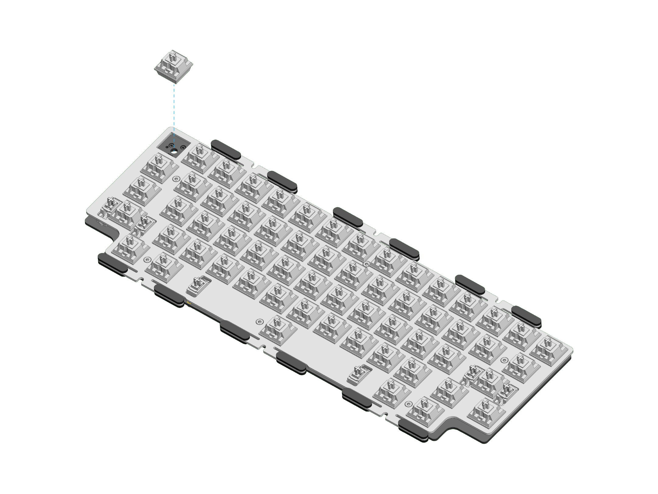 5. 将轴体安装到定位板上,小心不要刮花定位板